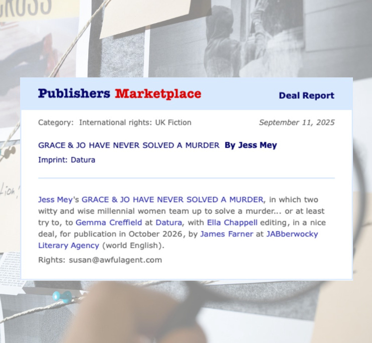 While I hope to have a lot more information to share with you in January about my cozy mystery, Grace & Jo Have Never Solved a Murder (for fans of the Finlay Donovan series and anything by Jesse Sutanto), this post is all about my thoughts and feelings as I head into my debut year. I’d planned to make this a super organized listicle; very demure, very quotable. But I hosted Christmas, have been entertaining two kids during the longest holiday break in the history of holiday breaks, had developmental edits to work on, beta reader feedback to incorporate, and a dermatology appointment to make (my ADHD’s least favorite task). So what you’re getting instead is a stream of consciousness that I’m spewing in between lunch and my 2:30 p.m. appointment at a head spa where I plan to become so relaxed, I forget my own name.